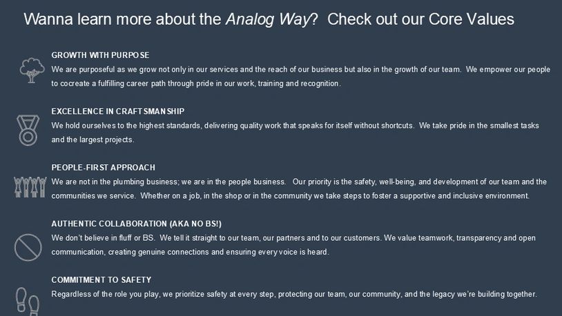 At Analog Mechanical, we’re building more than just projects—we’re crafting a legacy of excellence. With a people-first approach, safety is our top priority, protecting our team and our community.